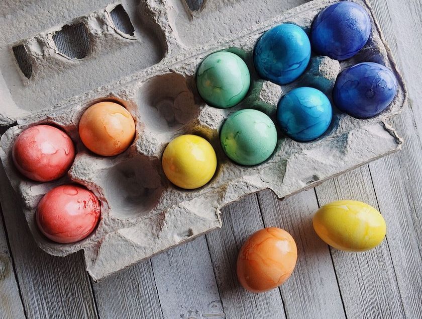 Подготовиться к окраске пасхальных яиц желательно заранее: собрать необходимые ингредиенты, купить свежие яйца с белой скорлупой, подготовить объемную кастрюлю с толстым дном из нержавеющей стали или с покрытием, устойчивым к окрашиванию, миски, шумовку и другую кухонную утварь.